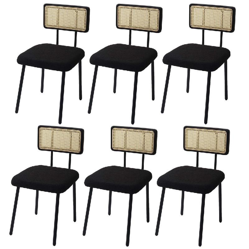 Mendler Lot de 6 chaises de salle à manger HWC-K88, chaise inclinable, bois polyrotin métal bouclé ~ tissu/textile noir - noir textile 3x97708