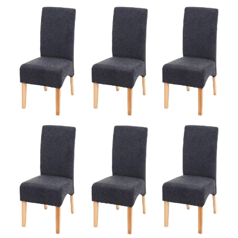 Mendler Lot de 6 chaises de salle à manger Latina, chaise de cuisine, tissu/textile certifié MVG ~ gris foncé, pieds clairs - gris textile 3x74640