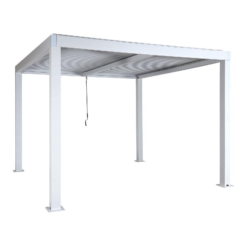 - Avec toit à lamelles pivotant pour une ombre réglable. - Avec manivelle pour ajuster manuellement les lamelles (de 0° à 80°). - Pieds inclus pour une stabilité stable - Structure stable en aluminium avec poteaux de 8x8cm - Avec évacuation de la pluie - Livré sans décoration - Résis