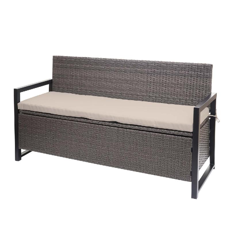 Mendler Poly-Rattan Banc 3 places HWC-F39, Banc de jardin Banc coffre, rangement Coussin d'assise ~ gris chiné, coussin beige - beige plastique 98452