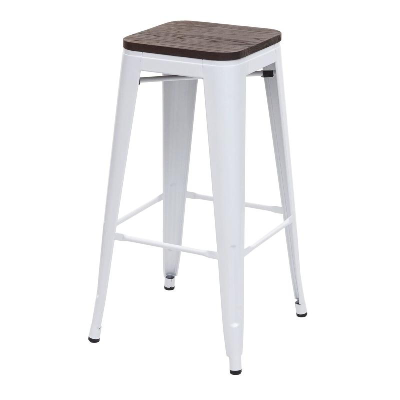 Mendler Tabouret de bar HWC-A73 avec assise en bois, chaise de bar, métal design industriel empilable ~ blanc - blanc Bois massif 74923