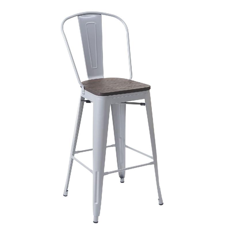 Mendler Tabouret de bar HWC-A73 avec assise en bois, chaise de bar, tabouret de comptoir avec dossier, métal design industriel ~ gris - gris Bois mas