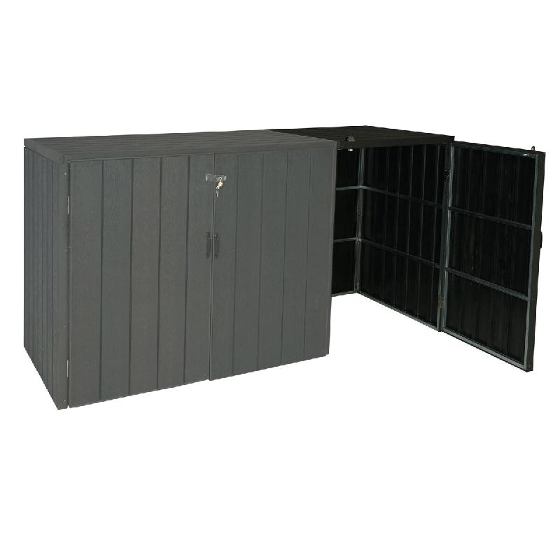 - Pour poubelles d'une capacité de 80 à 240 litres. - Chaque compartiment peut accueillir une poubelle de 80l/120l/240l - Plus robuste grâce à un poids plus élevé que celui de nombreux concurrents - Matériau : WPC et acier galvanisé - Épaisseur du matériau acier : 0,8 mm (et donc plus
