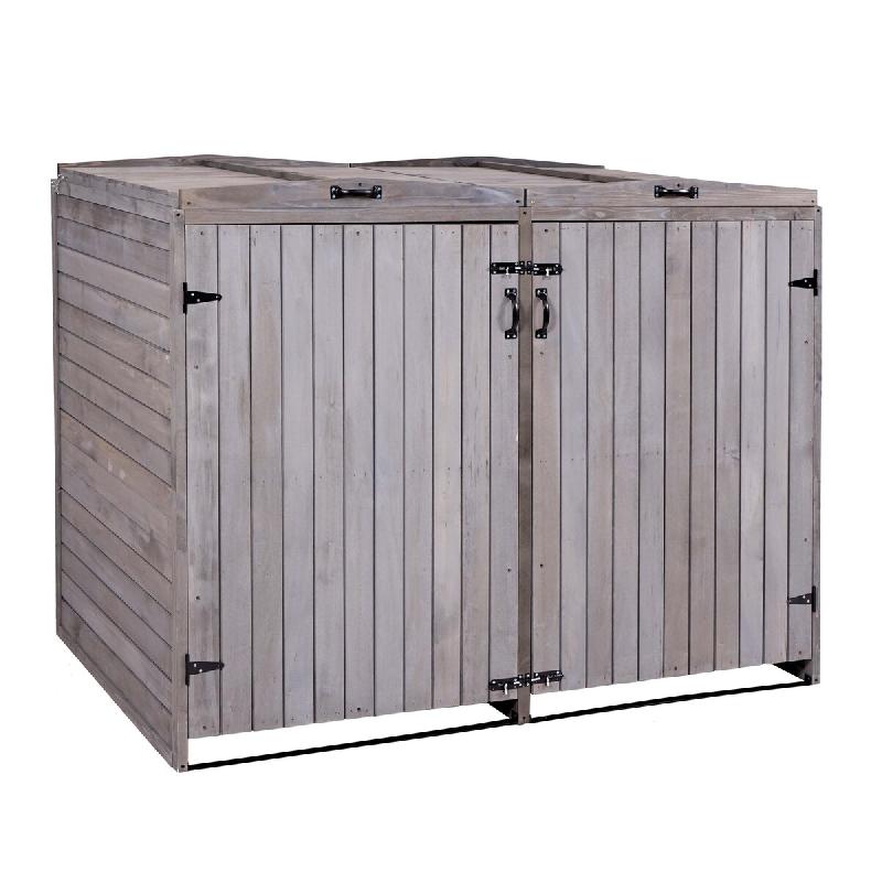 Abri de poubelles extérieur conteneurs à ordures 115x140x100 cm en métal aspect bois extensible grisPour poubelles d'une capacité de 80 à 240 litresNormes sociales BSCI vérifiéesConvient pour deux poubelles normales ou une grande poubelle par section soit jusqu'à 4 bacs pour les 2 sectionsEx