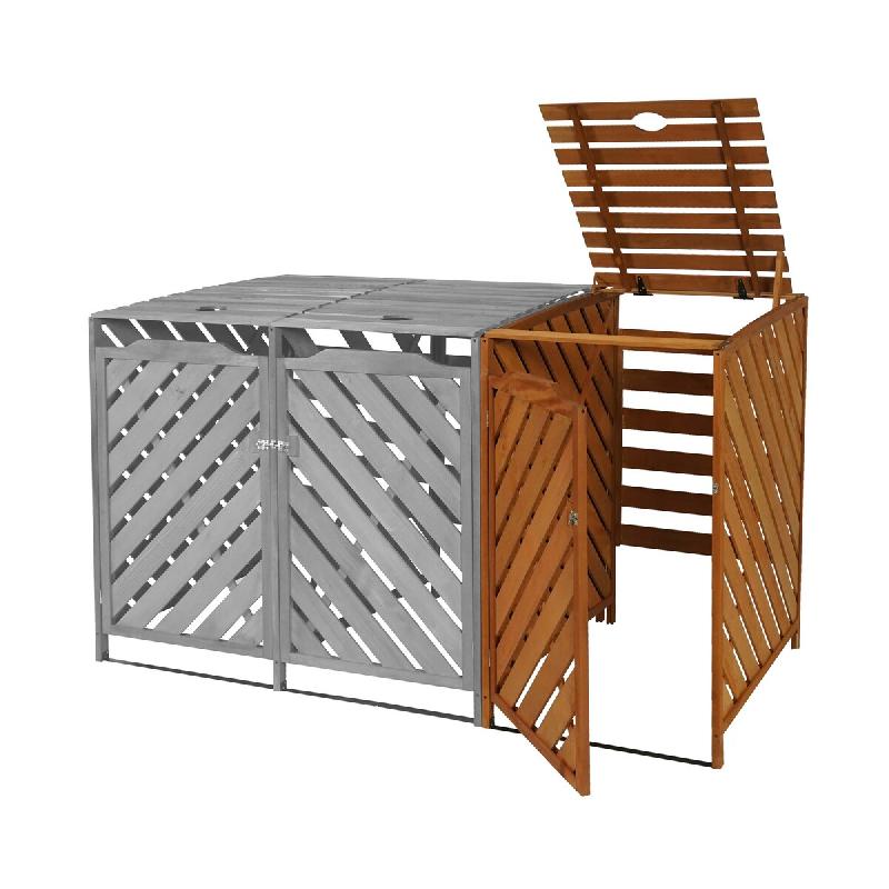 Cache - poubelles en bois, 219 cm, 3 poubelles, achat, pas cher Référence 196.0132.00.00 Marron miel - État : Neuf - Grand cache - poubelles, parfait pour 3 poubelles jusqu'à 240 Litres. Stable et esthétique, ce cache - poubelle sera idéal pour votre extérieur. Disponible en 2 col