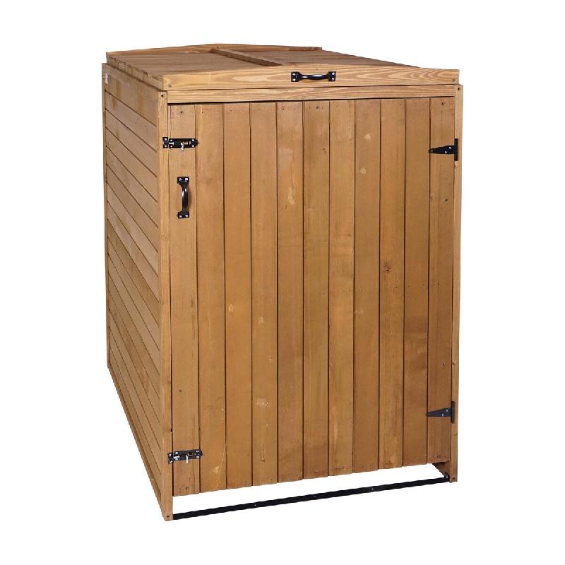 - Cette armoire à poubelles en bois de sapin n'est pas seulement agréable à l'œil. Outre la fonction de fermeture par des serrures à pêne dormant, le couvercle de cet habillage de poubelle est équipé d'un support, ce qui garantit un remplissage facile par le haut.
