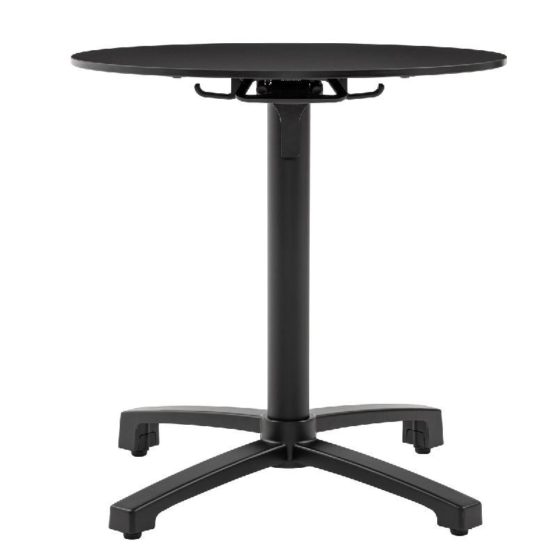 METRO PROFESSIONAL Table pliante MASSINI, aluminum, Ø 60 cm, plateau de table HPL, pieds de nivellement réglables automatiquement, noir - noir alum