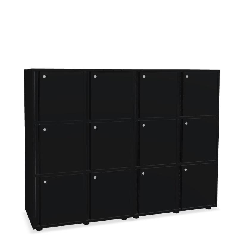 Meuble 12 cases de couleur - MDD - Noir, A clé, 4 x 3 cases -