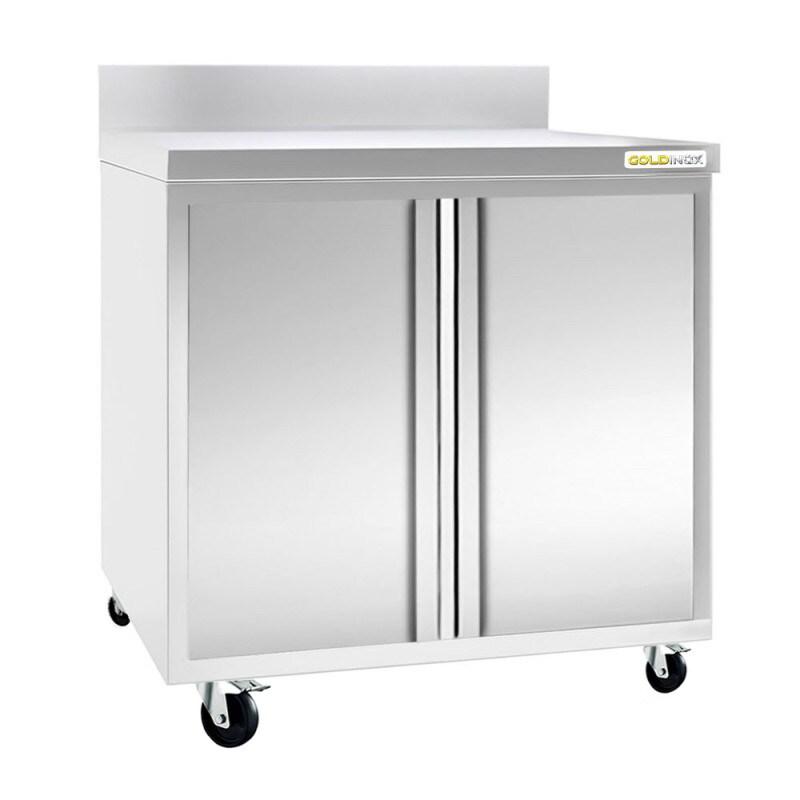 Meuble bas inox 800x600 mm adossée sur roulettes PREMIUM - GOLDINOX - gris inox 3701770809073