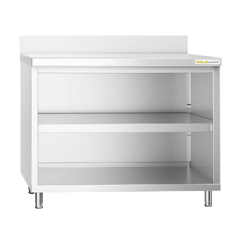 Meuble bas inox ouvert 1000x600 mm adossée PREMIUM - GOLDINOX - gris inox 3701770809493