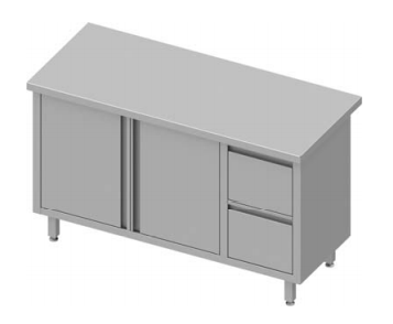 Meuble bas table de travail inox centrale avec deux tiroirs à droite portes battantes 1600x800x900 soudée - 932808160 -
