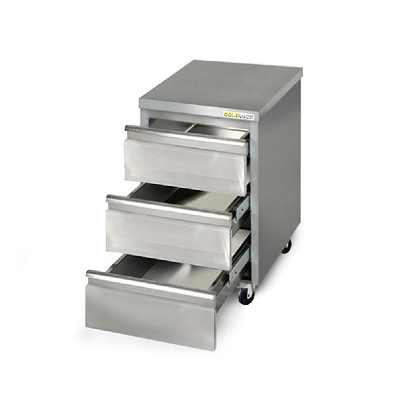Meuble inox 3 tiroirs 500 x 600 mm sur roulettes / GOLDINOX - gris inox 3701770820726