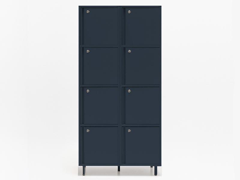 Meuble vestiaires 6 ou 8 cases - MDD - Bleu foncé , A clé, 2 x 4 cases, Pieds en métal -