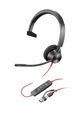 Micro-casque Poly Blackwire 3310 monaural USB-C certifié Microsoft Teams + adaptateur USB-C/A