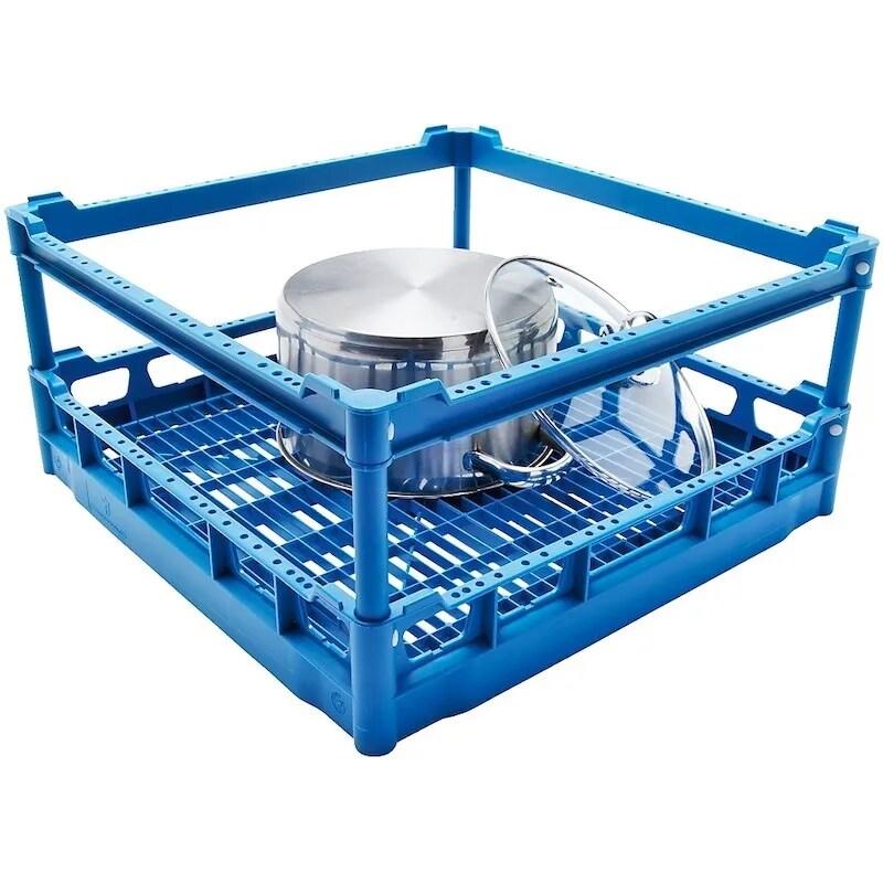 CASIER A COTE OUVERT AVEC DOIGTS Utilisez ce Casier lave - vaisselle en copolymère rigide : il dispose de côtés ouverts et est idéal pour les plats et les plateaux de grandes dimensions (supérieur à 450 mm).Il est équipé de doigts d'une hauteur de 73 mm et son Fond aéré garantit