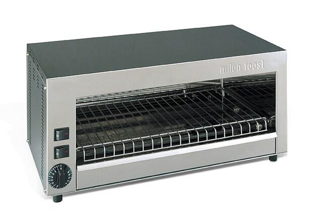 Toaster convoyeur pour pour les fast food ou brasseries à très fort débit. il est possible de faire 1000 tranches de pain grillés/h, mais aussi d'autres produits tels que des bagels, des pizzas ou des english muffins, produisant une finition dorée, croustillante et grillée sur le côté coupé