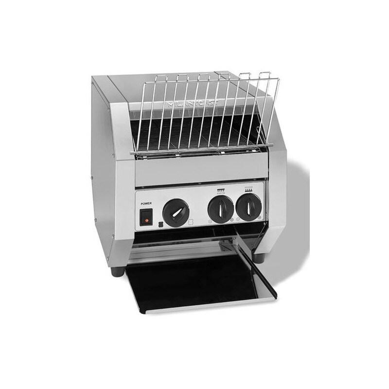 Toaster convoyeur spécial CHR. Préconisé pour les hôtels de 40 à 80 chambres Ce grill pain toaster permet de cuire en continu 600 tranches de pain par heure et sera parfait pour les buffets de petit déjeuner ou les restaurants en libre service. Le tapis mesure 25 cm de large et permet de grill