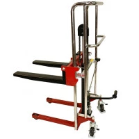 Gerbeur simple et facile d'utilisation, avec levée par pédale. - Caractéristiques principales : - Soupape de sécurité - Fourches fixes - Deux roues fixes et deux roues pivotantes - Châssis chromé - Déplacement facile grâce aux roues avec roulements à billes - Conformité : EN 175557