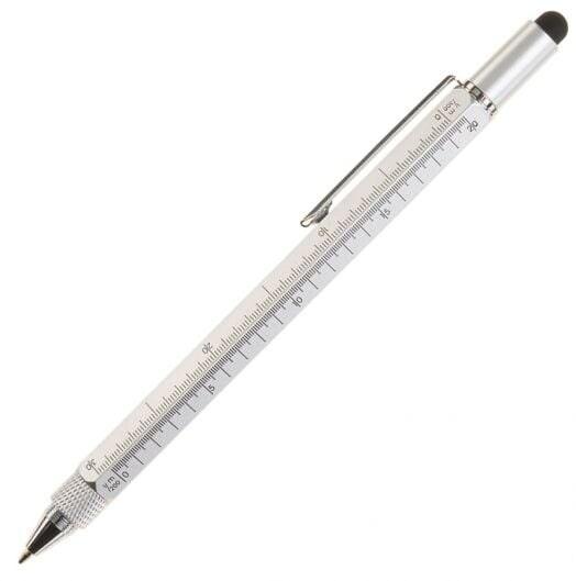 Corps gradué en centimètres et en pouces. Embout tactile. Tournevis. Niveau à bulle. Livré sous blister. Recharge compatible : Metal Cross Mini (6518-6).