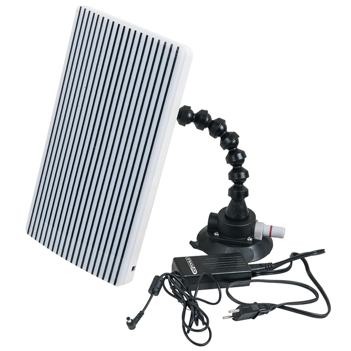 Miroir parfait pour visualiser des bosses en carrosserie. Idéal pour mieux déceler les creux et les bosse par exemples lors de dommages par la grêle, pour les déplacements La lumière est projetée en bandes Muni dune ventouse pouvant être fixée sur toutes les parties de la voiture. Caractéristiques : Marque : KS TOOLS Alimentation : 230 V Largeur : 203 mm Longueur : 360 mm Matière : coque en matière plastique Poids : 1,48 kg