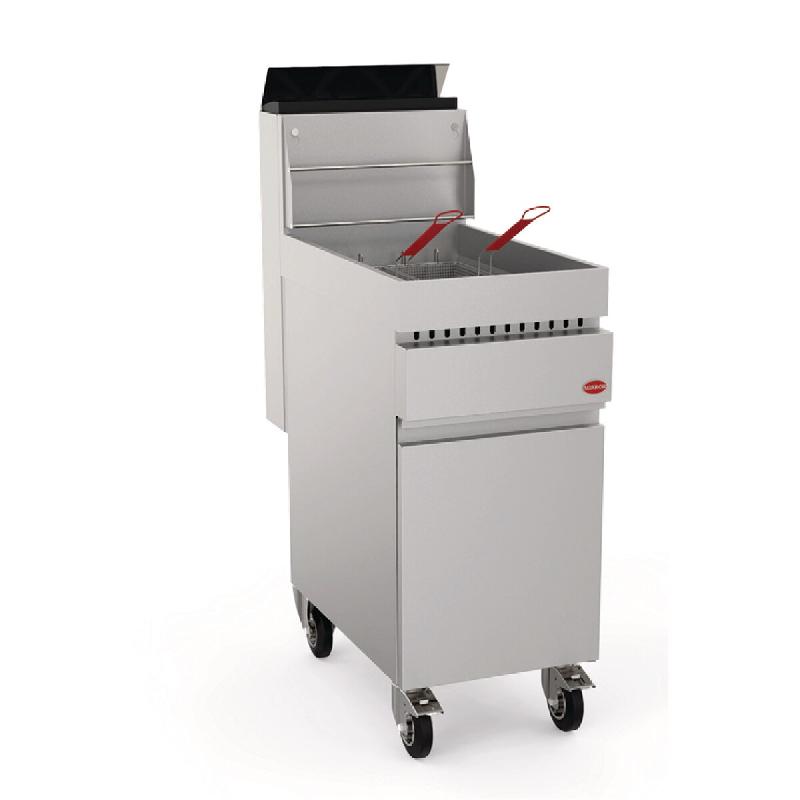 Friteuse à gaz sur coffre - Cette friteuse professionnelle à gaz est conçue entièrement en inox AISI 304. La friteuse gaz sur meuble est idéale pour les professionnels de la restauration. Deux modèles sont disponibles: 1x20 litres ou 2x20 litres. - Caractéristiques de la friteuse à