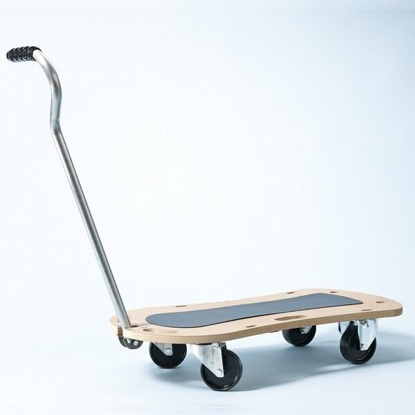 Plateau roulant avec poignée tubulaire, idéal pour faciliter le déplacement d'objets lourds ou encombrants. Conçu pour une utilisation pratique et ergonomique.
