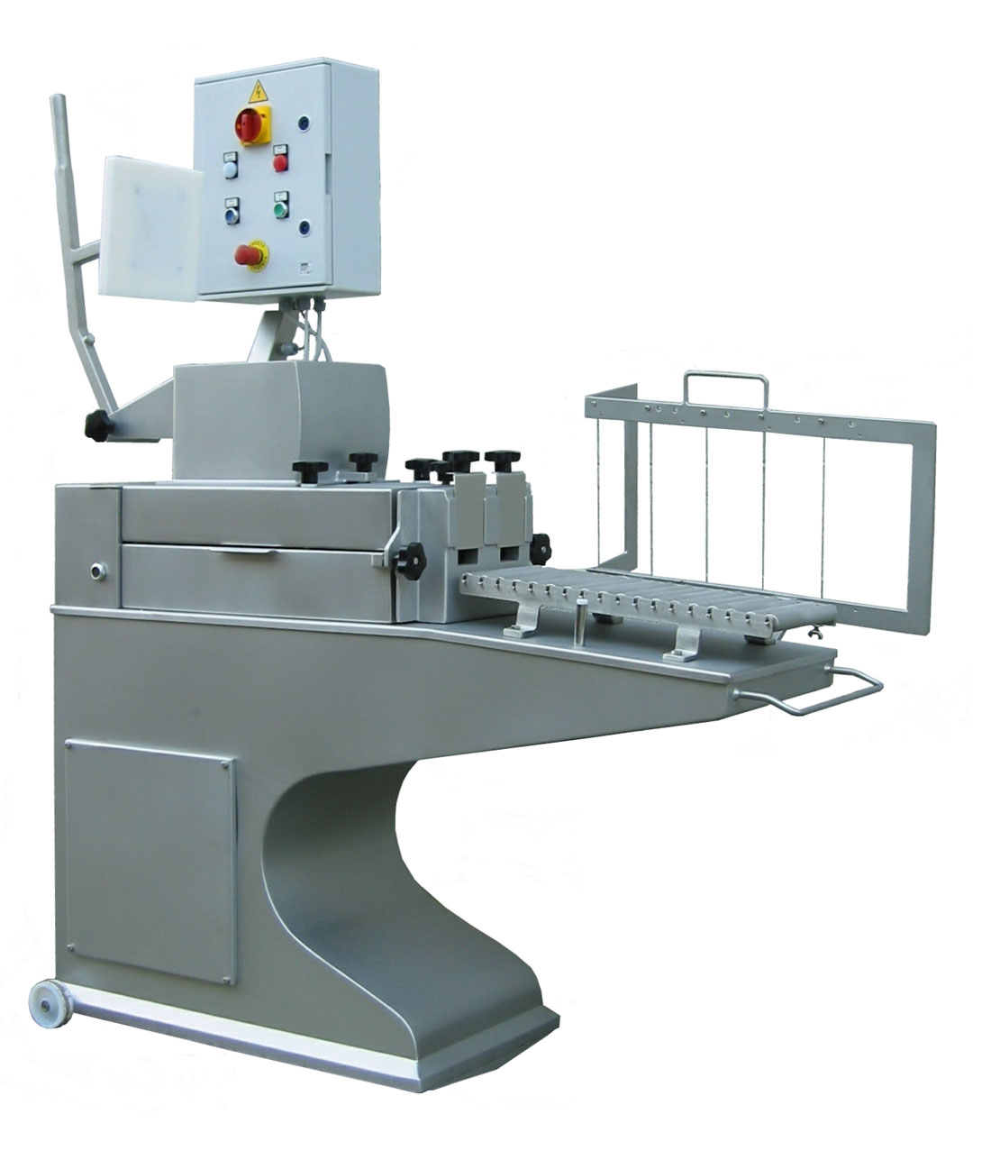 Machine qui forme les blocs de beurre. - Formes disponibles : 250 ou 500 gr - Composition : - Cuve d'alimentation - 2 tarières pour le pétrissage et la poussée - Chambre refroidie - Extrudeur formateur - Convoyeur à rouleaux pour la sortie des blocs - Équipement : Tableau électrique po