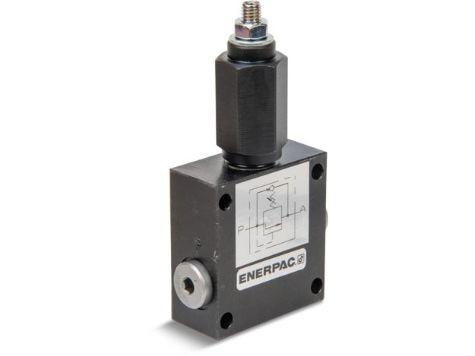 Valve de régulation automatique pour circuit hydraulique - Cette valve de régulation automatique pour circuit hydraulique s'emploie pour des vérins simple ou double effet. - Elle permet le réglage facile des pressions de travail entre 20 et 700 bar ; à des valeurs inférieures au réglage de