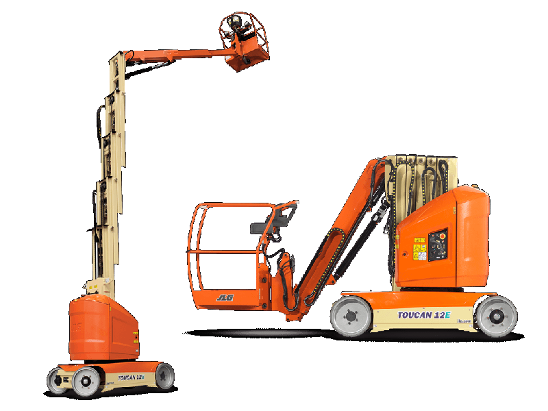 NACELLE TOUCAN JLG À MÂT VERTICAL TOUCAN 12E ET12E PLUS - L'idéal pour vous faufiler entre les chaînes de montage, les rayonnages, les canalisations et les cloisonnages en contournant tous les obstacles avec un déport incomparable. - La portée de travail de jusqu'à 6m05 et la capacité de s
