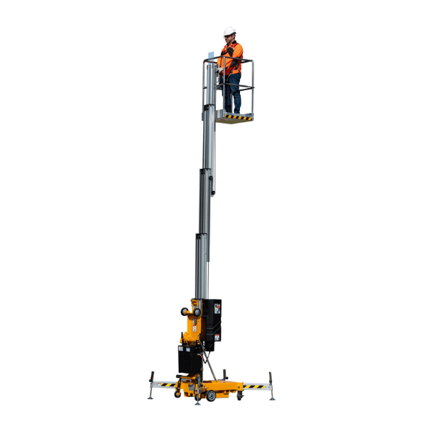 Notre gamme de mâts verticaux électriques est idéale pour l'élévation des personnes pour la réalisation de travaux en hauteur avec faible déport dans des zones étroites. Grâce à leur rayon de braquage intérieur nul, leur faible encombrement et un surplomb allant jusqu'à 7 mètres, ces m