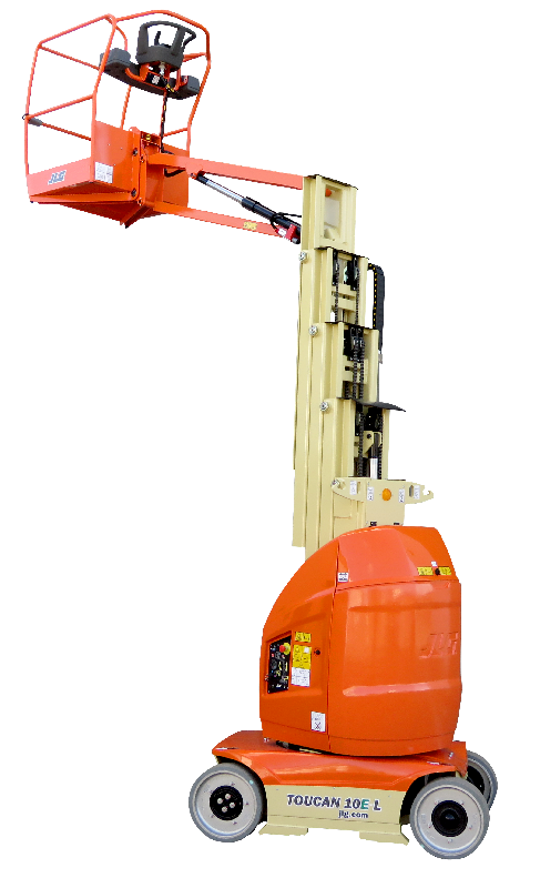 NACELLE TOUCAN JLG À MÂT VERTICAL TOUCAN 10E - L'idéal pour vous faufiler entre les chaînes de montage, les rayonnages, les canalisations et les cloisonnages en contournant tous les obstacles. - La portée de travail de 3m38 et la capacité de surplomb de 6m51 permettent d'atteindre des zones