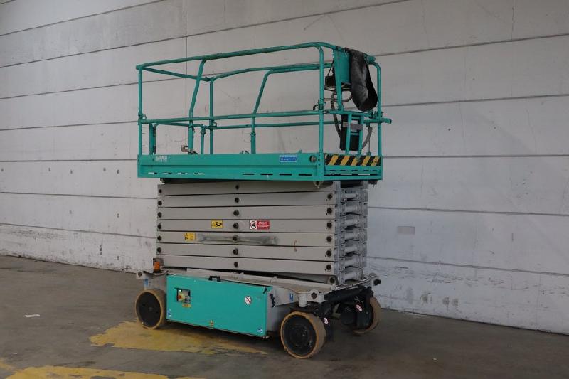 Nacelle à Ciseaux électrique Y83EL12 - Hauteur de plateforme : 8,30 m - Hauteur de travail : 10,30 m - Dimension de plate - forme : 2,65 x 1,14 m - Capacité maximum : 350 kg - Poids : 2.320 kg - Largeur : 1,16 m