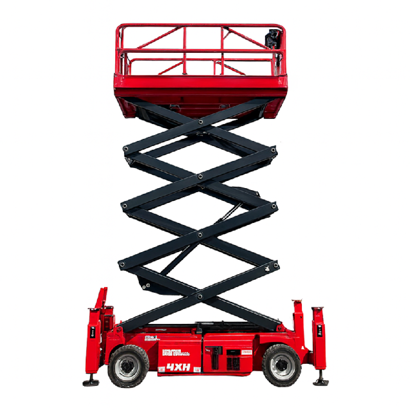 Nacelle ciseaux tout terrain 4x4 - Hauteur de travail : 12m / 39ft - Capacité de plate - forme : 909kg / 2004 lb - Largeur de la machine : 2.35m / 8ft - Caractéristiques principales - Meilleure stabilité sur les surfaces inégales : L'oscillation standard vous fournit une meilleure traction
