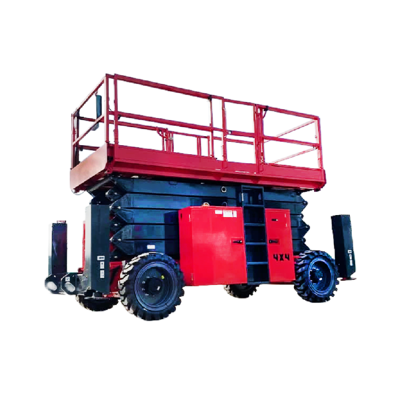 Nacelle ciseaux tout terrain 4x4 - Hauteur de travail : 12m / 39ft - Capacité de plate - forme : 909kg / 2004 lb - Largeur de la machine : 2.35m / 8ft - Caractéristiques principales - Meilleure stabilité sur les surfaces inégales : L'oscillation standard vous fournit une meilleure traction