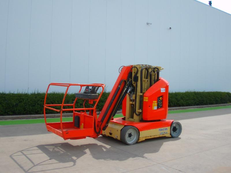 NACELLE TOUCAN JLG À MÂT VERTICAL TOUCAN 12E ET12E PLUS - L'idéal pour vous faufiler entre les chaînes de montage, les rayonnages, les canalisations et les cloisonnages en contournant tous les obstacles avec un déport incomparable. - La portée de travail de jusqu'à 6m05 et la capacité de s