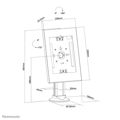 Le Neomounts FL15 - 625WH1 est un support de tablette au sol qui peut pivoter à 360° pour passer facilement de l'orientation portrait à l'orientation paysage. De plus, le support de tablette peut être incliné de +20°/ - 110° pour une visualisation confortable. Grce au rail coulissant situ