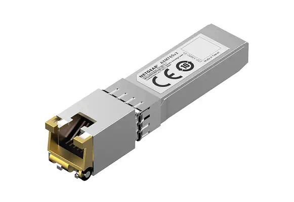 Le module NETGEAR 10GBASE - T SFP+ (AXM765v2) offre une connectivité cuivre 10G avec un câblage de Cat6a ou CAT7 jusqu'à 80 mètres lorsqu'il est inséré dans l'emplacement SFP+ d'un switch. Le module AXM765v2 se loge dans les interfaces SFP+ ou SFP28 des switc