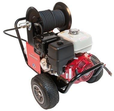 Nettoyeur haute pression thermique pour usage professionnel avec démarreur électrique : Pompe : radiale à vilebrequin, 3 pistons céramique. Régulateur : séparé de la culasse avec retombée de pression à zéro. Moteur : essence avec sécurité manque d'huile. Démarrage : électrique. Châssi