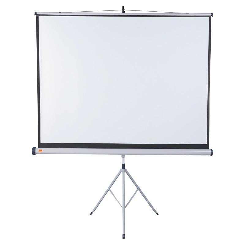 NOBO écran de projection sur trépied Standard, dimensions: (L)1500 x (H)1.138 mm,surface de projection: 1.450 x 1.088mm format 4:3, trépied rabattable, toile pliable en blanc mat avec cintre Keystoen intégré, surface de projection enroulable, corps métallique - 1902395