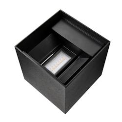 Asbol Kubi est une applique murale minimaliste avec une forme cubique élégante pour une utilisation intérieure et extérieure. La lampe éclaire vers le haut et vers le bas. Vous pouvez concevoir votre propre éclairage à l'aide des trois motifs lumineux livrés avec la lampe. Asbol Kubi est dot