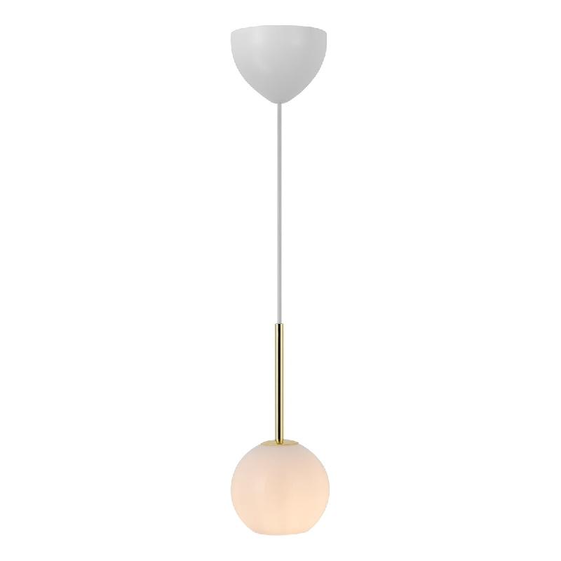La série Franca offre un design exclusif et élégant avec un beau verre brillant et du laiton satiné. La suspension intègre des détails vintage avec une touche moderne. Le dôme en verre blanc émet une lumière douce et diffuse et est parfait seul ou en groupe de plusieurs suspensions à diffÃ