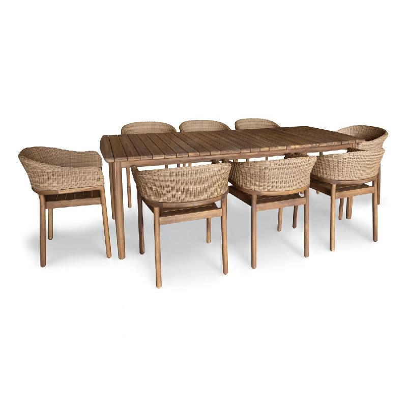 Now's Home - Ensemble Table 230cm + 8 Faut/table Acacia Miel Resine Tressee Alhambra - 3256390253534