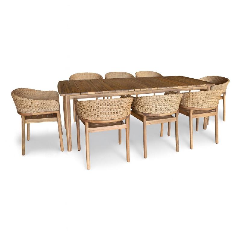 Now's Home - Ensemble Table 230cm + 8 Faut/table Acacia Miel Resine Tressee Alhambra - 3256390253534