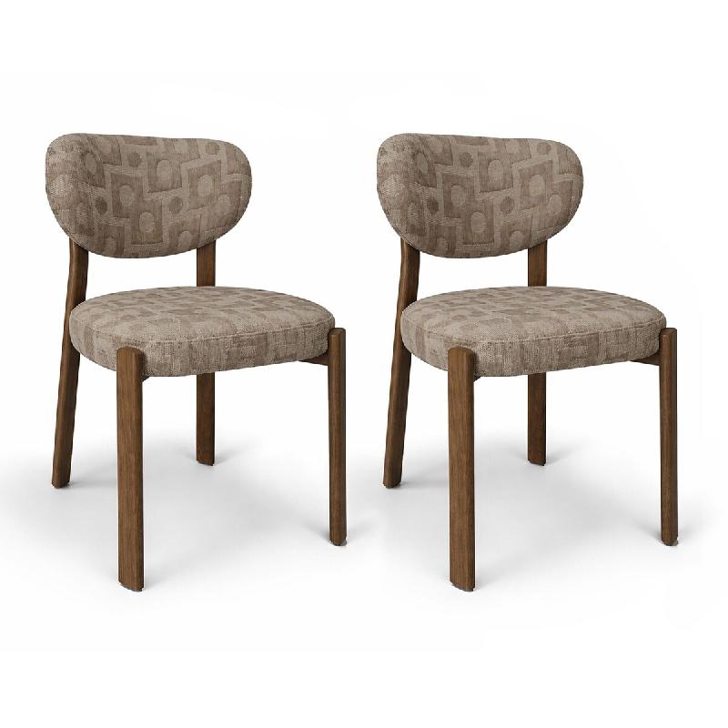 Now's Home - Lot 2 chaise tissu taupe structuré métal effet bois 55x48x80.5 suzie - 3256390254708