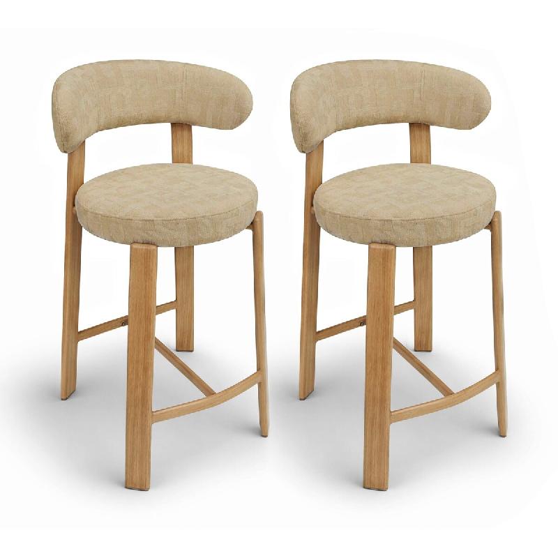 Now's Home - Lot 2 chaises/ bar tissu structure beige en metal effet bois s - 3256390254722