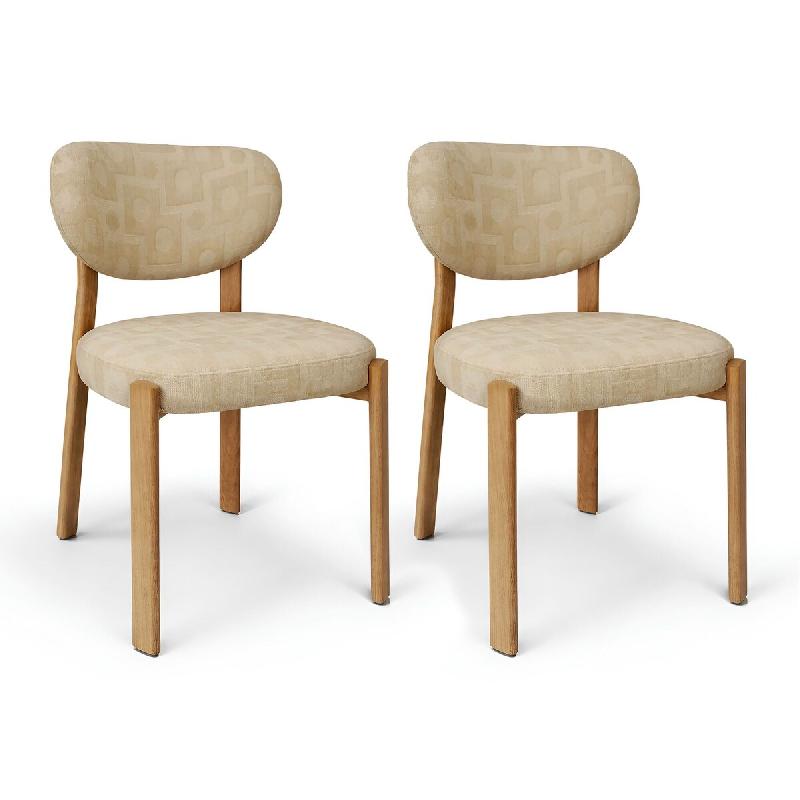 Now's Home - Lot 2 chaises tissu beig strucuré metal effet bois 55x48x80.5 suzie - 3256390254685
