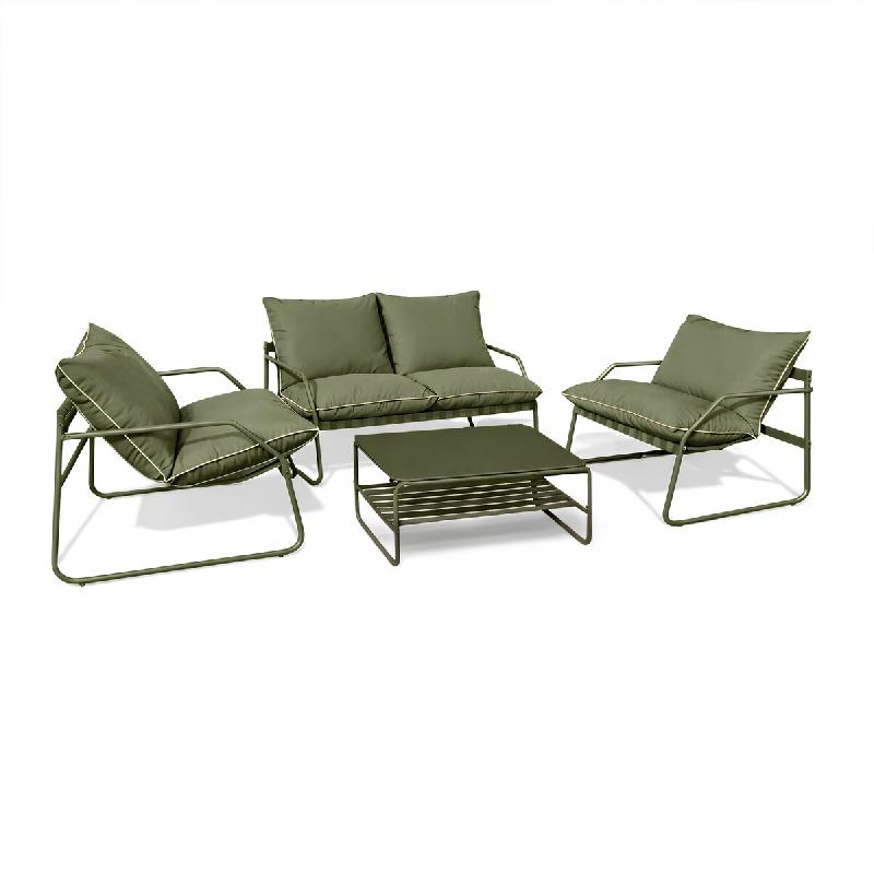 Now's Home - Salon de jardin en acier et tissu vert kaki avec table basse luigi - 3256390254449
