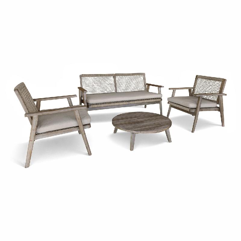 Now's Home - Salon De Jardin En Bois D'acacia Vieilli + Corde Mastic Et Coussins Eden - 3256390253596
