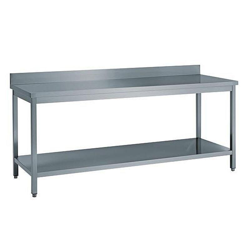 7333.0108 - Table de travail pro inox avec étagère et dosseret démontable Dimensions (LxPxH) (mm) : 1200x700x850