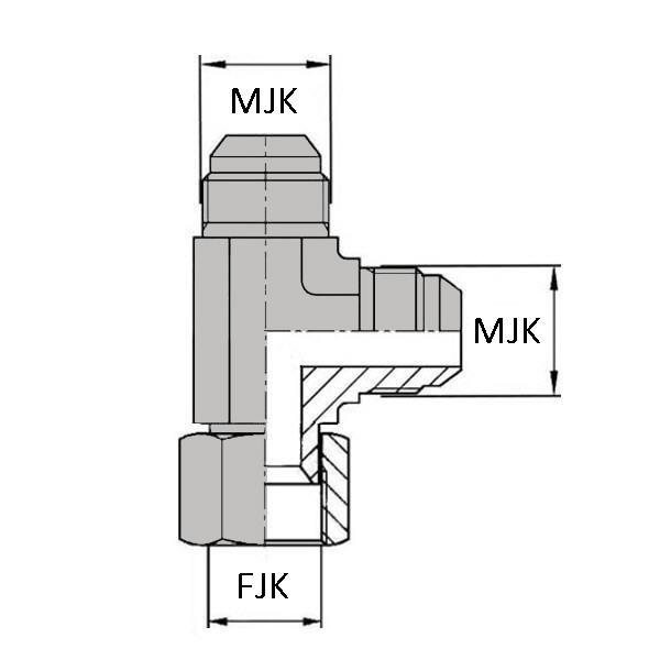 Caractéristiques : - DESIGNATION : CMGCY1/4 JOR / MKO (JIS) 14X150 90 - Ø MG (inch) : 1/4" - Ø MG (mm) : 13.15 - Ø MJK (mm) : 14X150 - USP 1 : Avec joint o'ring - USP 2 : Avec bague anti - extrusion